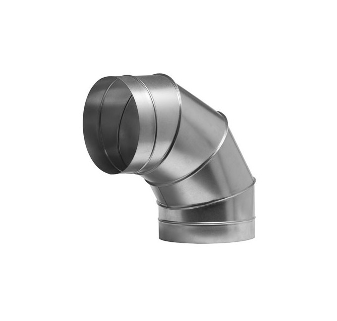 Los codos engatillados están diseñados para sistemas de ventilación de edificios basados en conductos y conductos lisos. Se pueden fabricar codos con distintos radios a petición del cliente. La pieza se conecta a un conducto insertando una pieza dentro del mismo.
